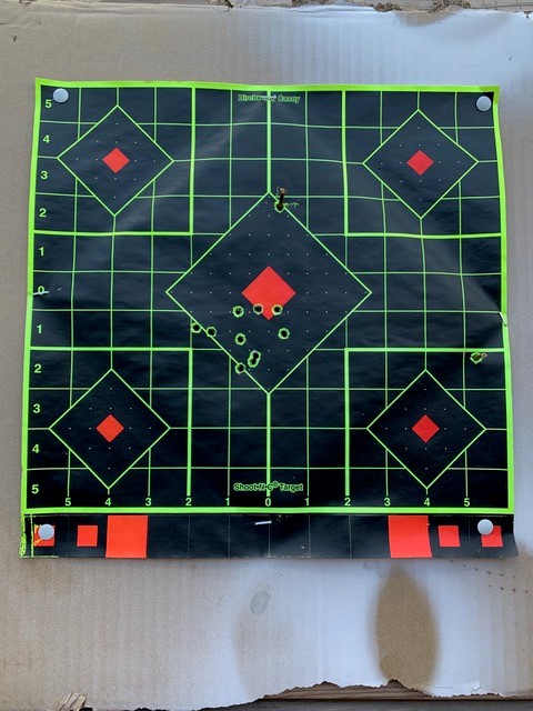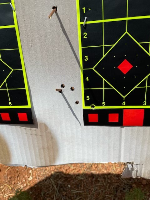 Something worth mentioning, even with different shooters, we noticed that our groups tightened considerably when we switched to 62 grain rounds which were just some boat tail FMJ .223 that I had pulled from my pre-Covid supply cache. My brother-in-law who spent seven years as a SWAT sniper in California even took his turn behind the gun and shot a respectable group from a rickety uneven bench and tactical bag for a rest.